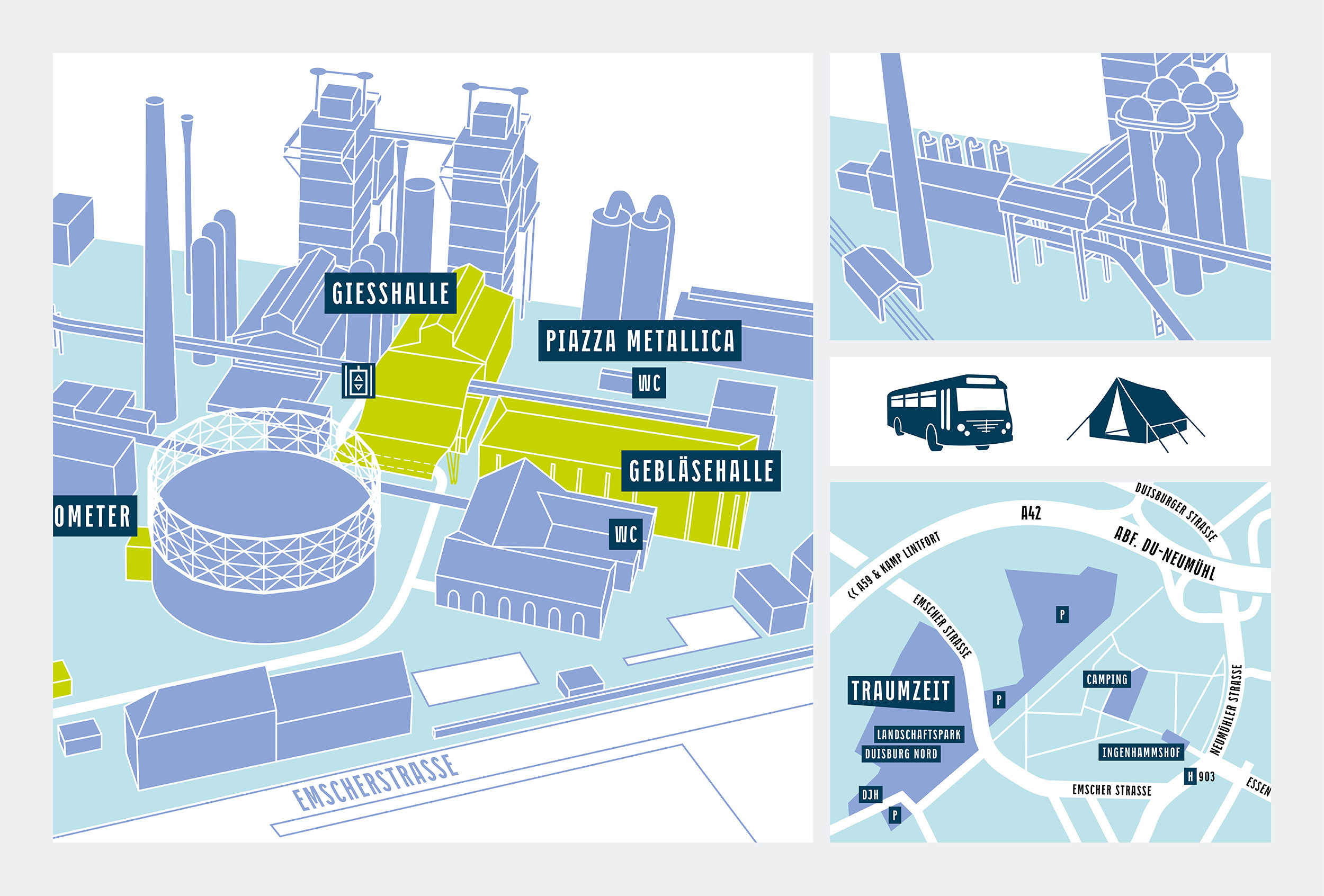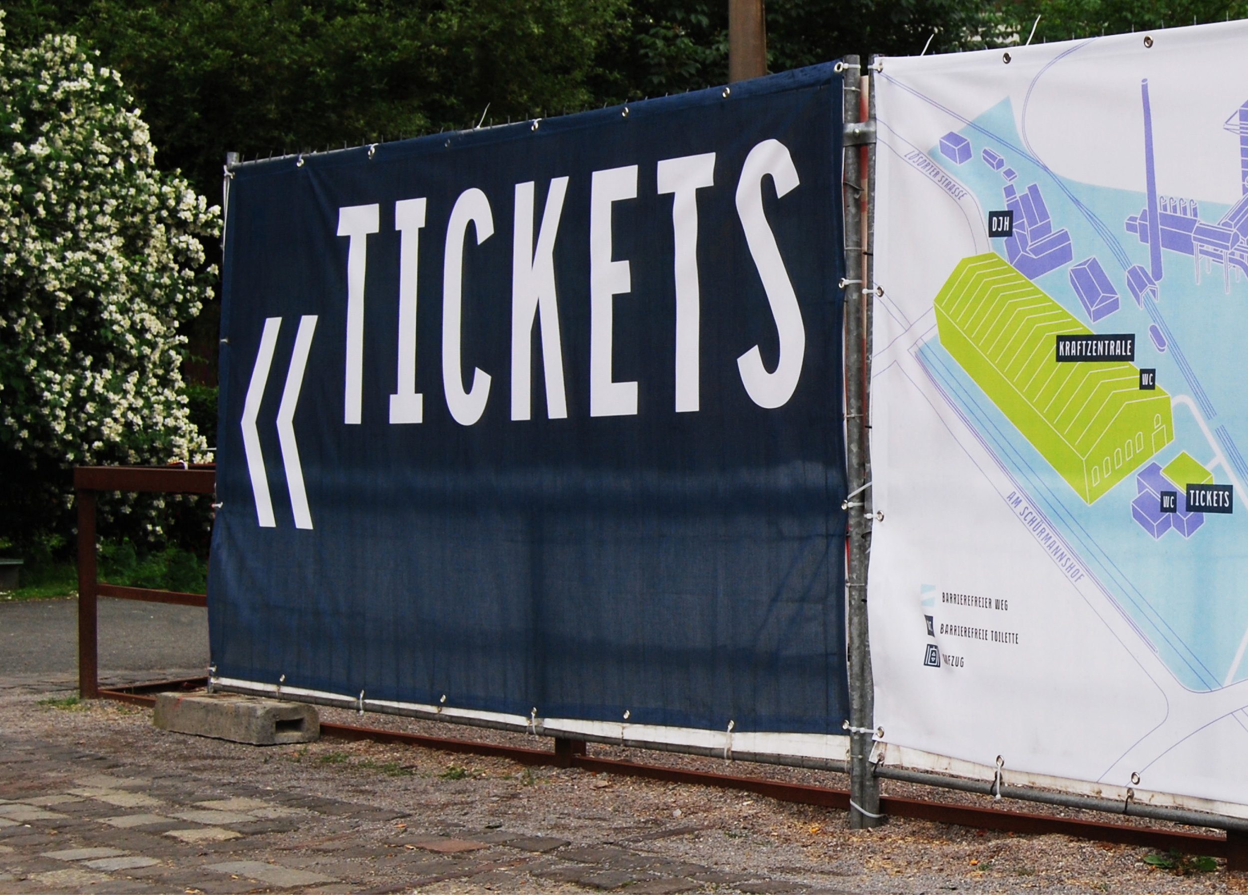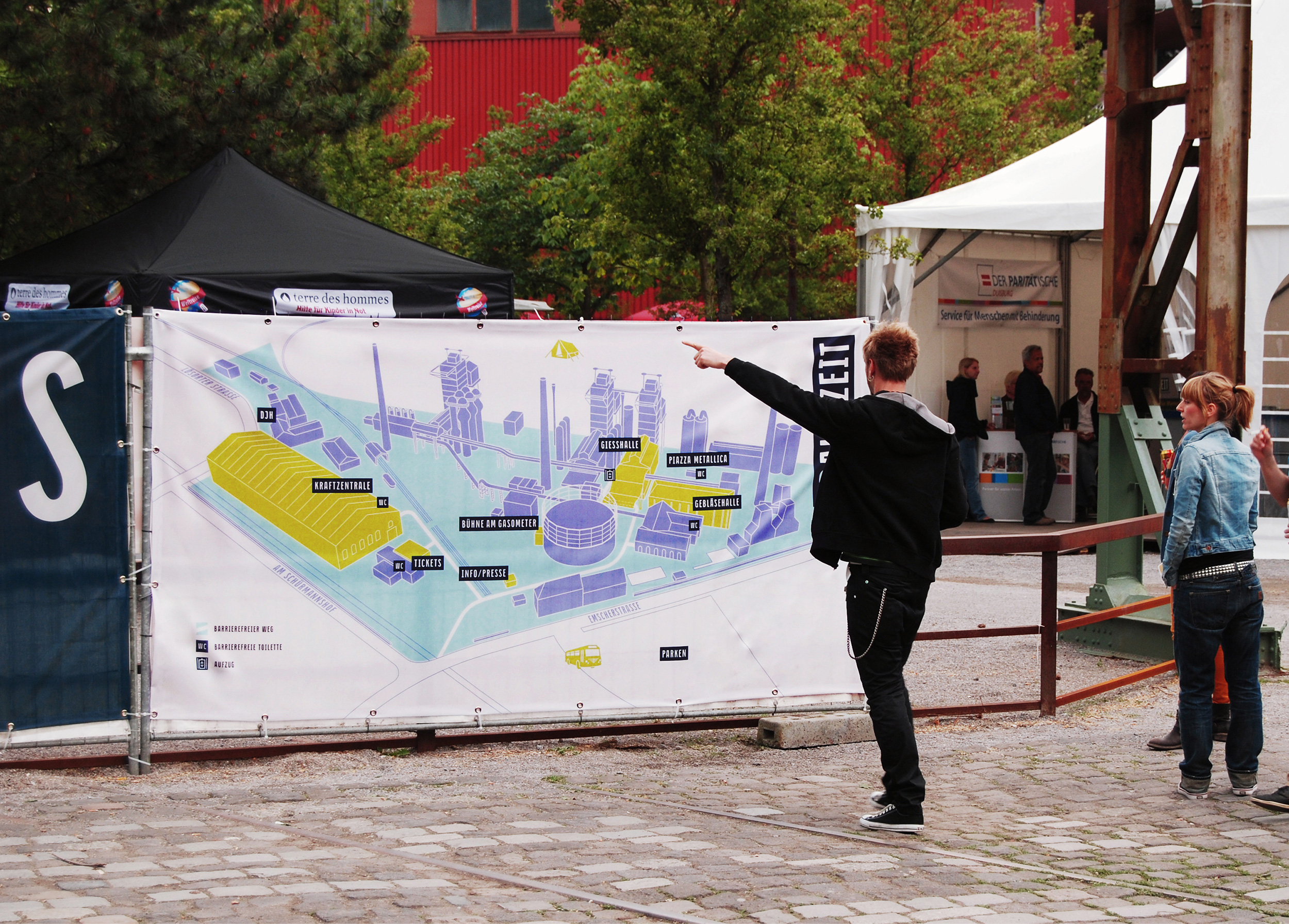 Die Orientierung beim Festival geschieht durch Großbanner und Lagepläne.