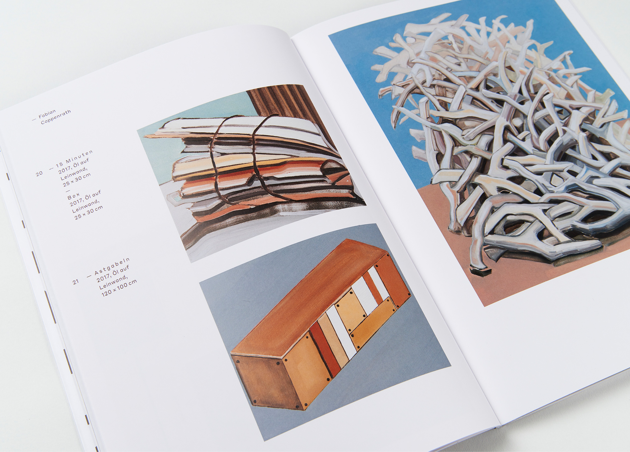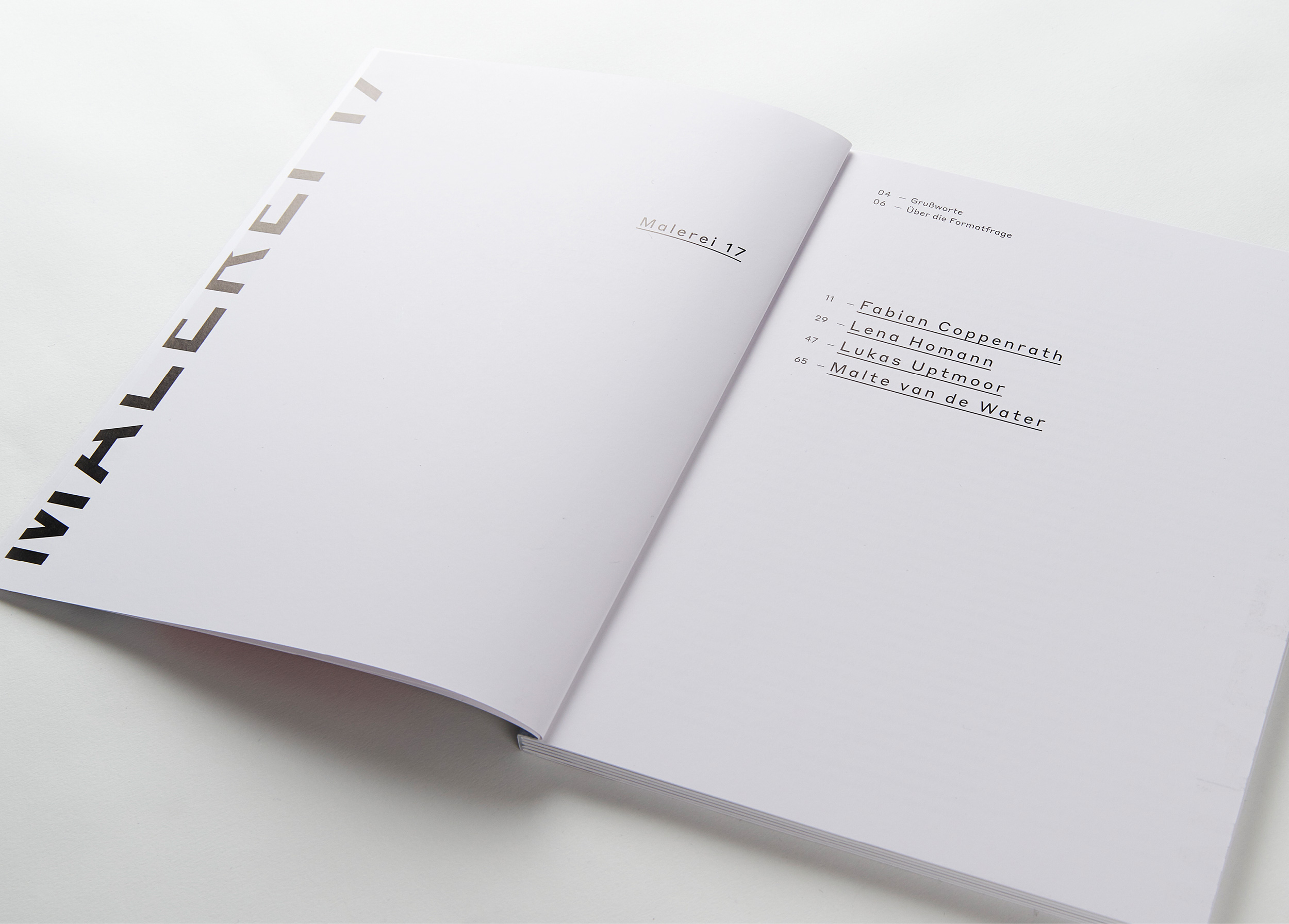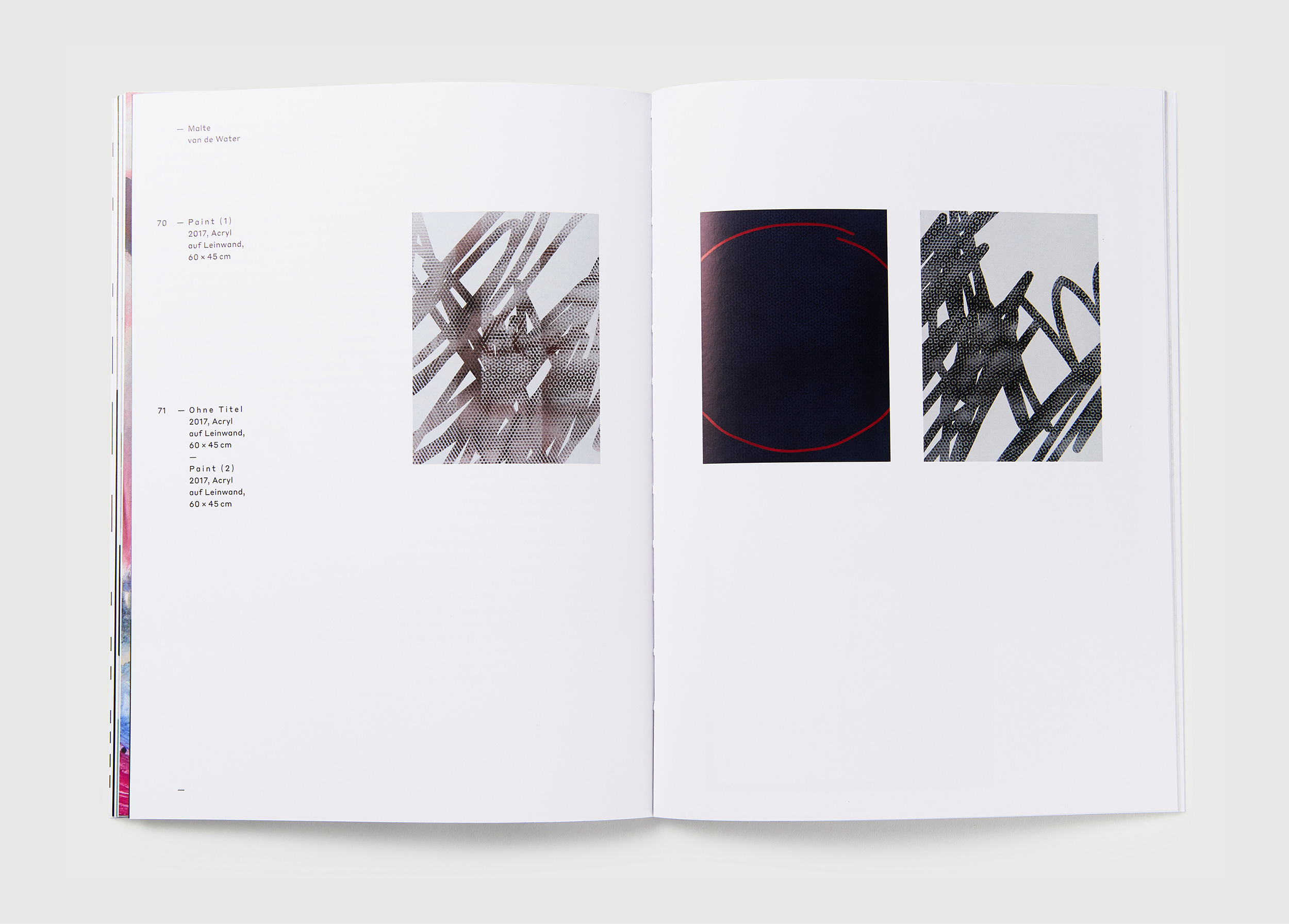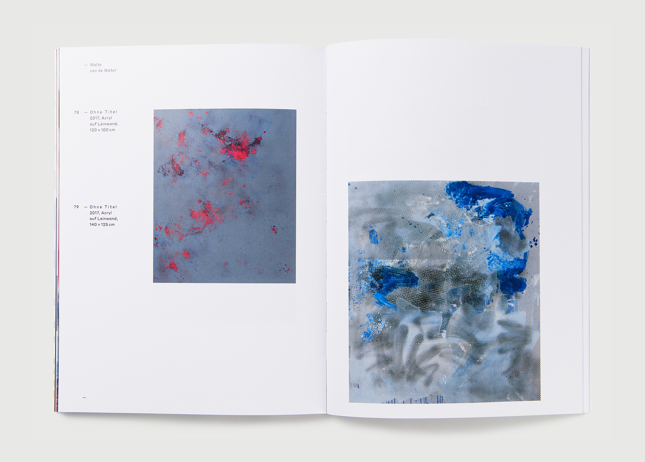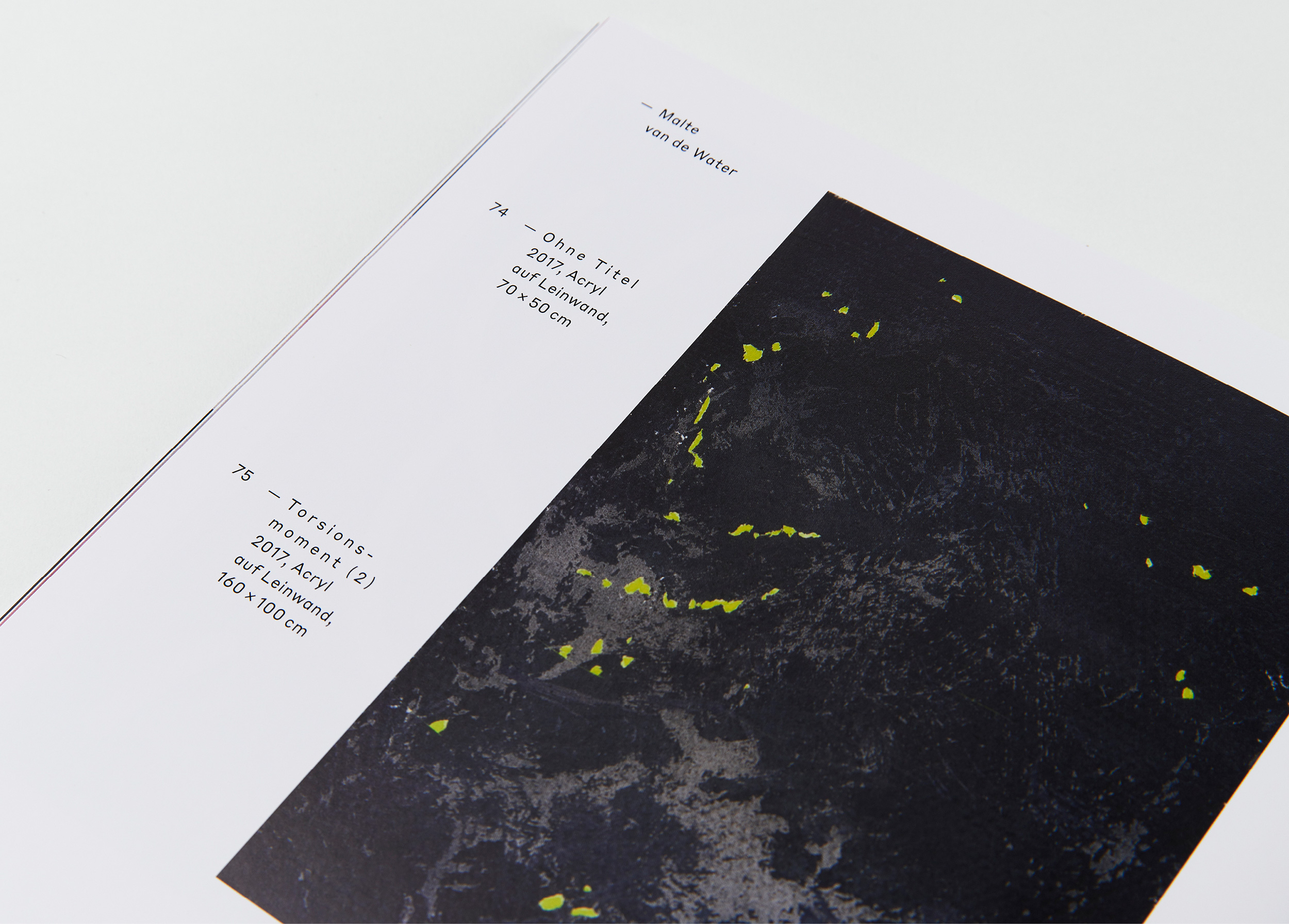Jedes Jahr gibt die Kunstakademie Münster vier Studierenden aus dem Bereich Malerei die Möglichkeit ihre Arbeiten im Rahmen einer Ausstellung und eines Kataloges zu Präsentieren. Die Gestaltung ist als Reihe konzipiert. Das Covermotiv ergibt sich aus einer Überlagerung von Ausschnitten von Arbeiten aller vier Künstler.