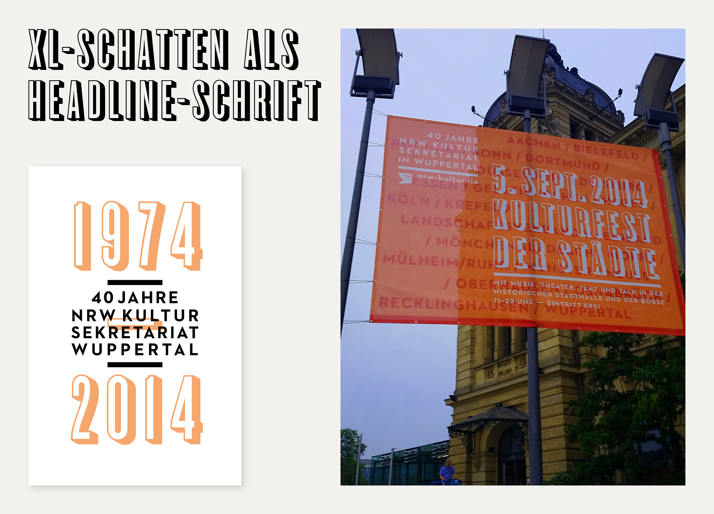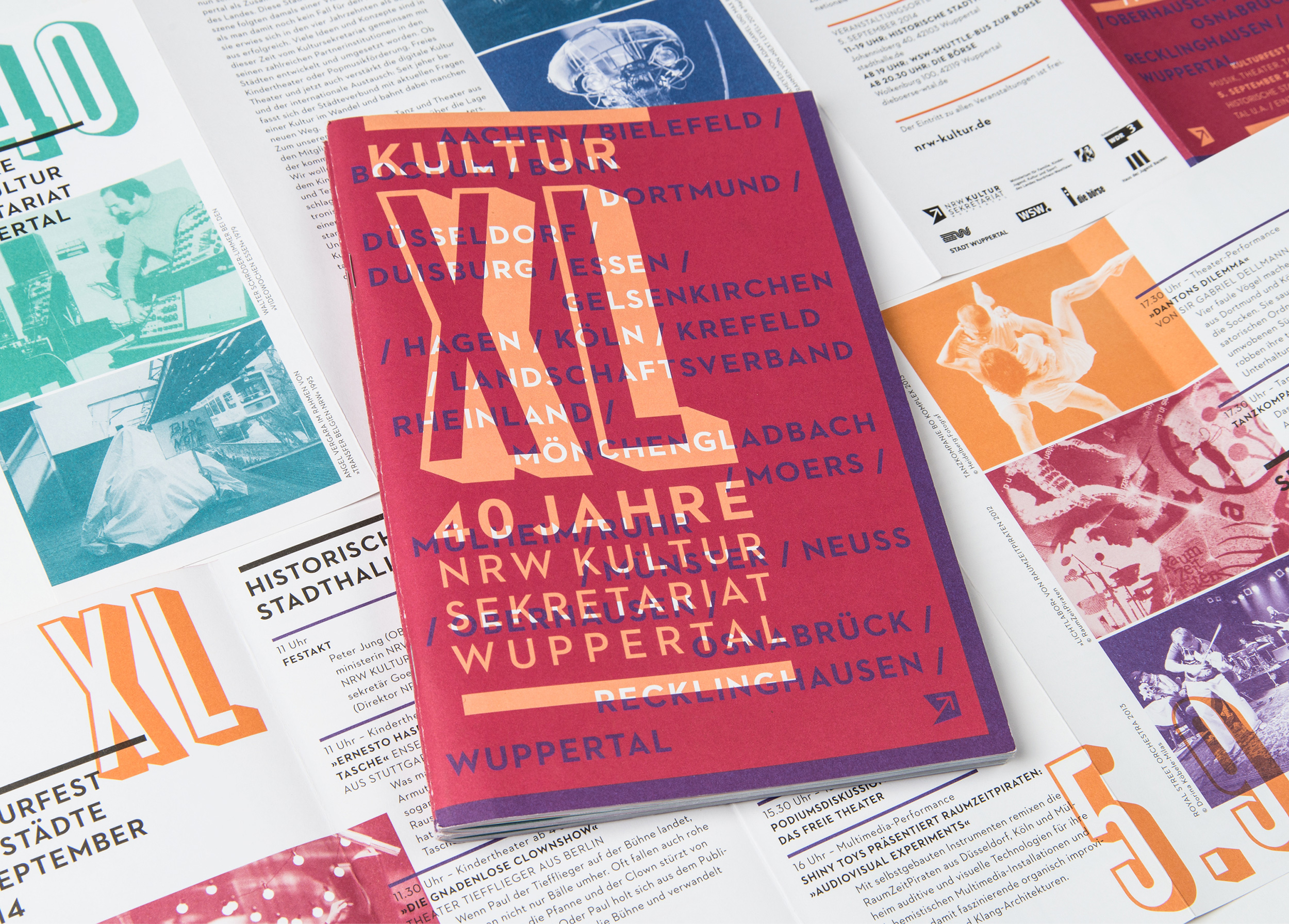 Der Hauptschriftzug »Kultur XL« bietet zwei Lesarten: zum einen ist XL die lateinische Schreibweise für 40, zum anderen steht es für die Förderung eines »extra großen« Kulturangebotes.