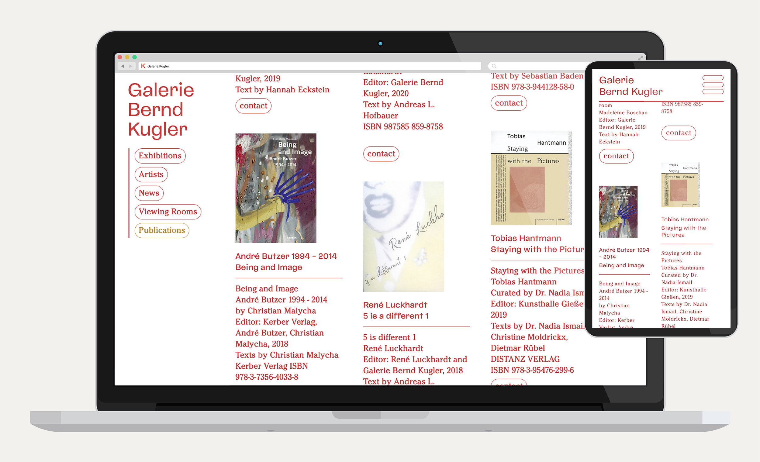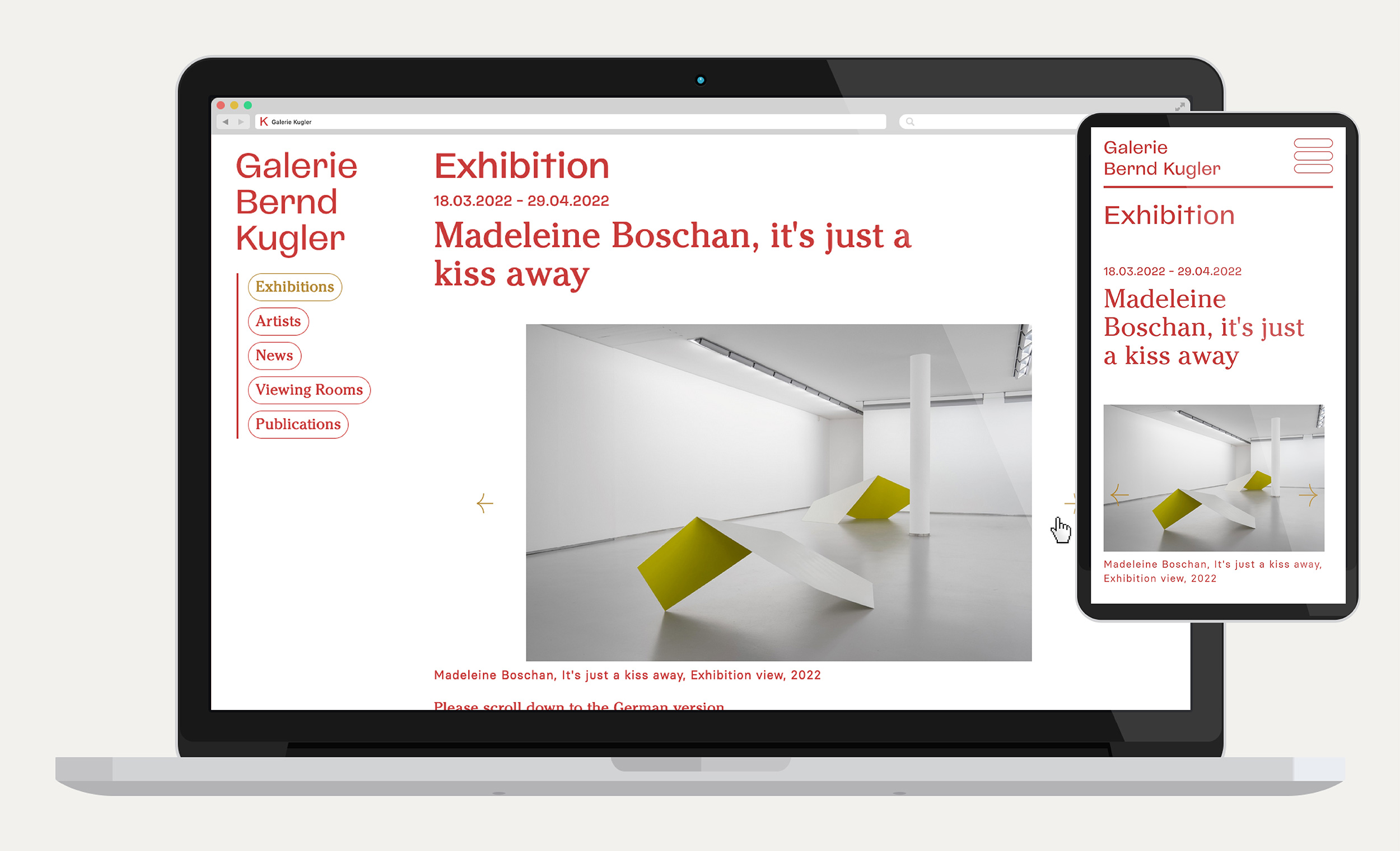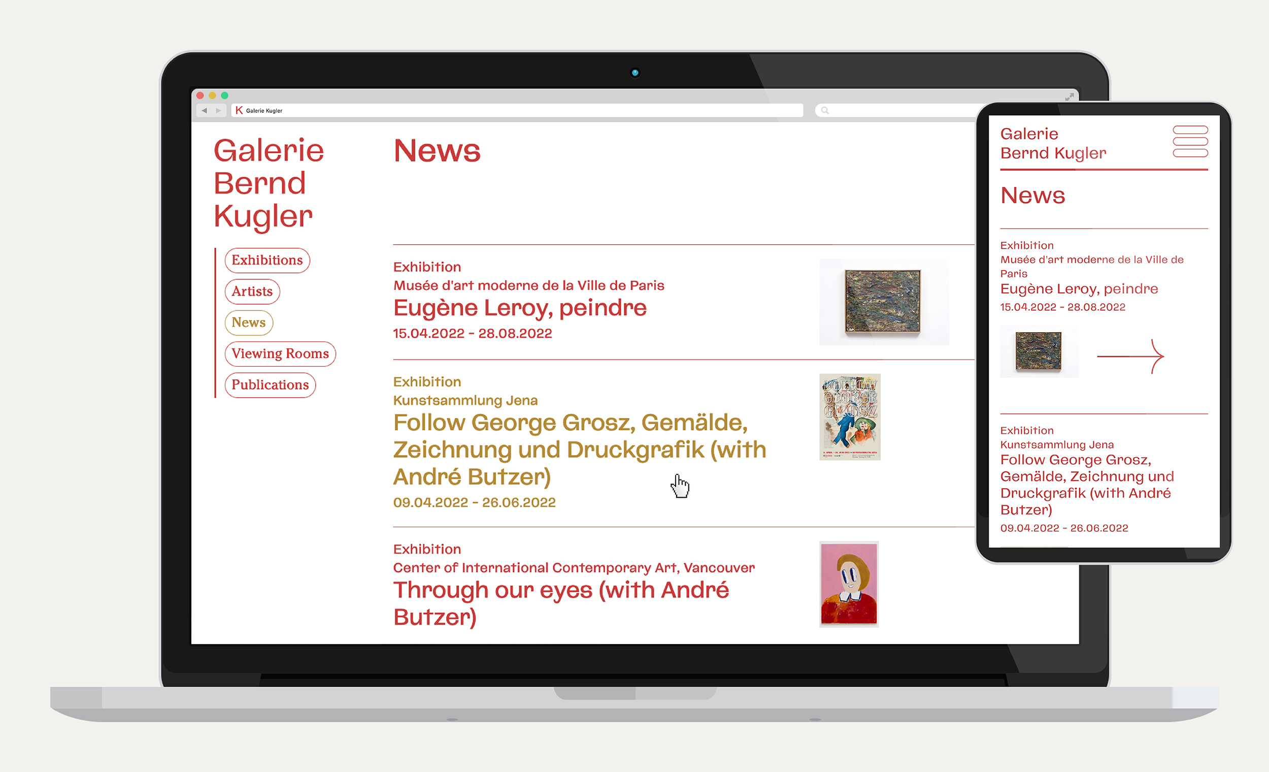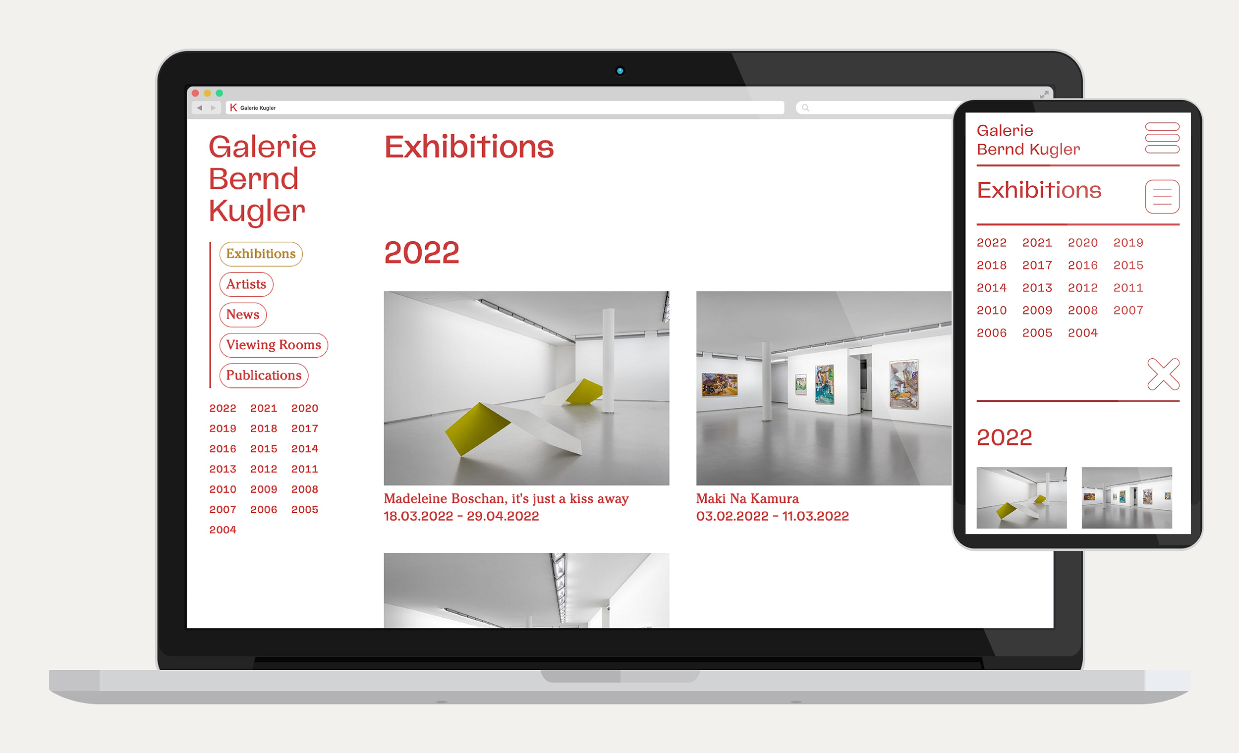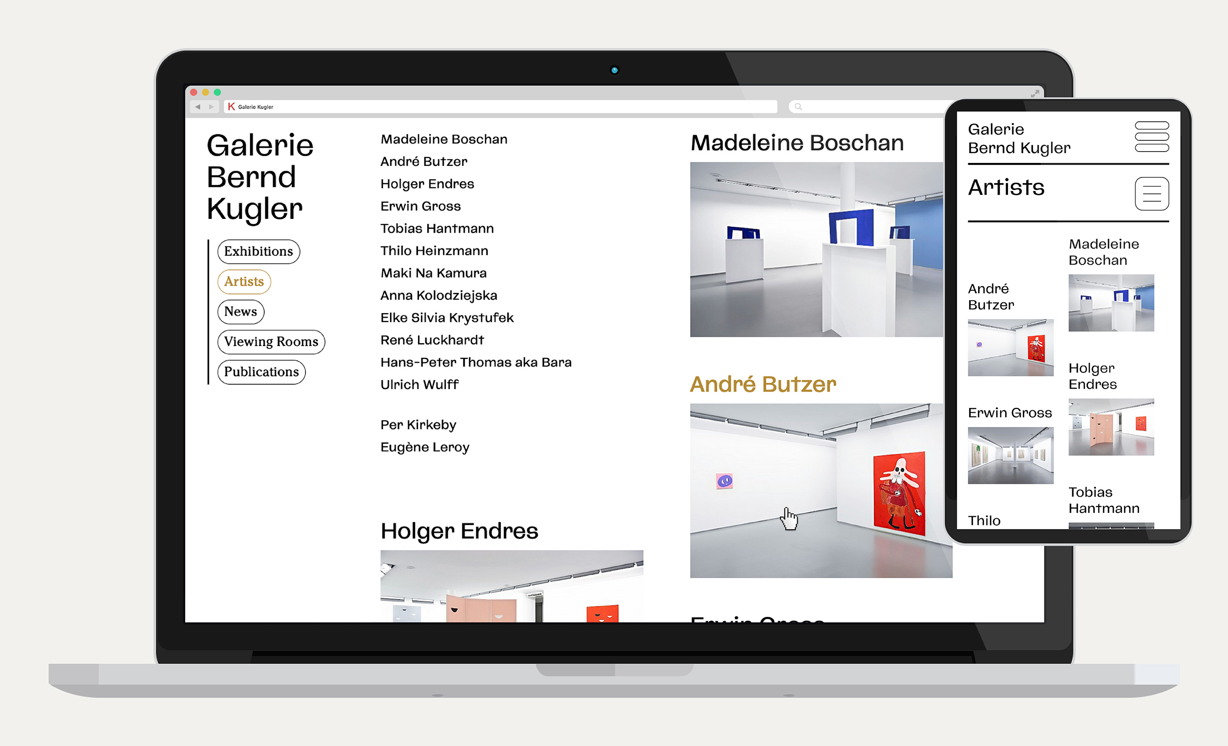 Die Galerie Bernd Kugler aus Innsbruck vertritt internationale zeitgenössische Künstlerinnen und Künstler. Die Gestaltung der Seite ist sowohl einfach, als auch progressiv und spiegelt damit die programmatische Ausrichtung der Galerie wider.
