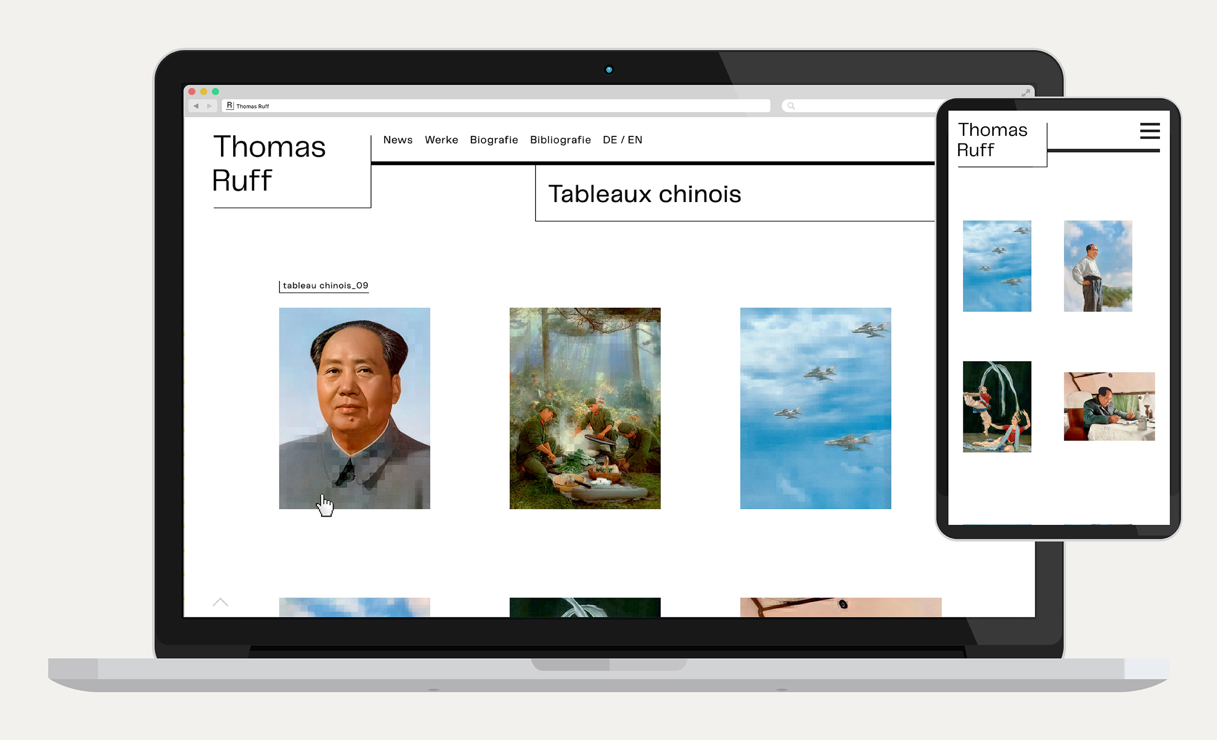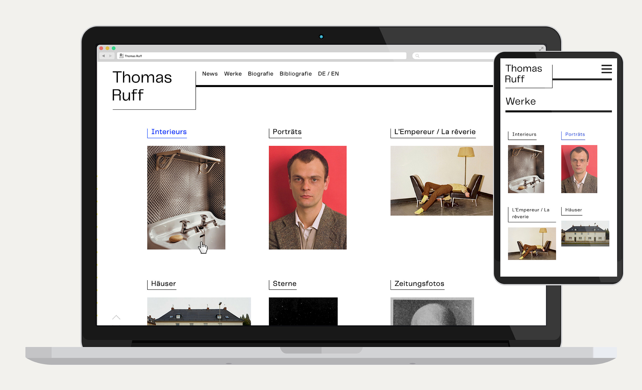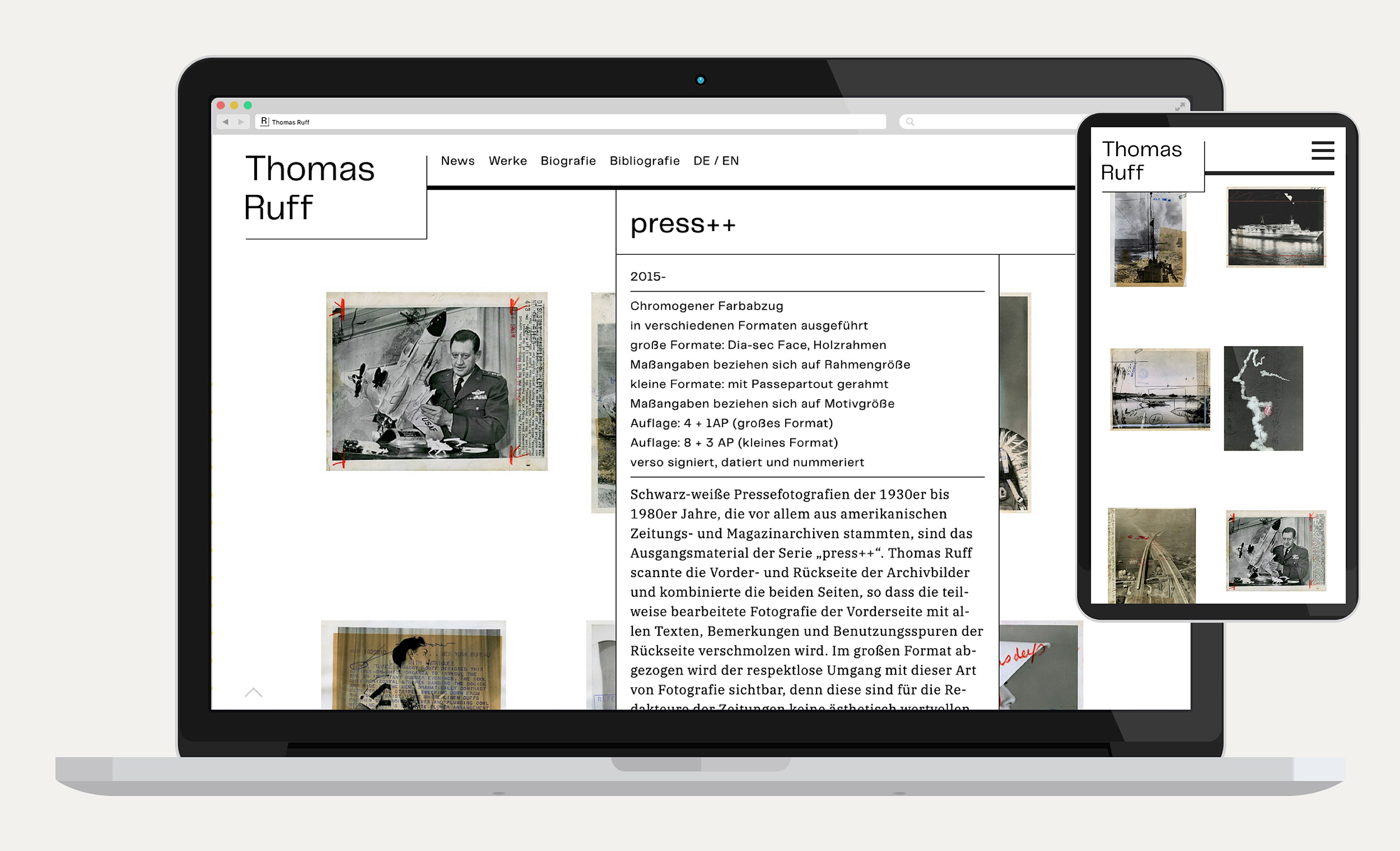 Trotz seiner Popularität ist das Gesamtwerk von Thomas Ruff nur den wenigsten in voller Gänze bekannt. So entstand die Idee, eine Webseite als umfassendes Werkverzeichnis zu schaffen, die alle Werkreihen mit allen Arbeiten zeigt.