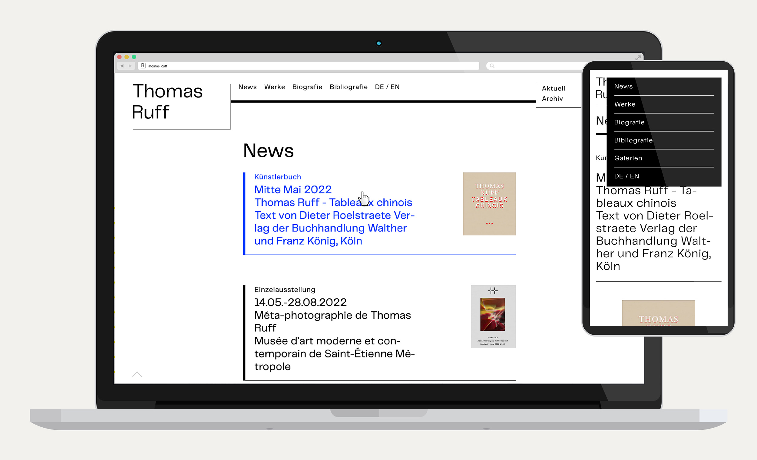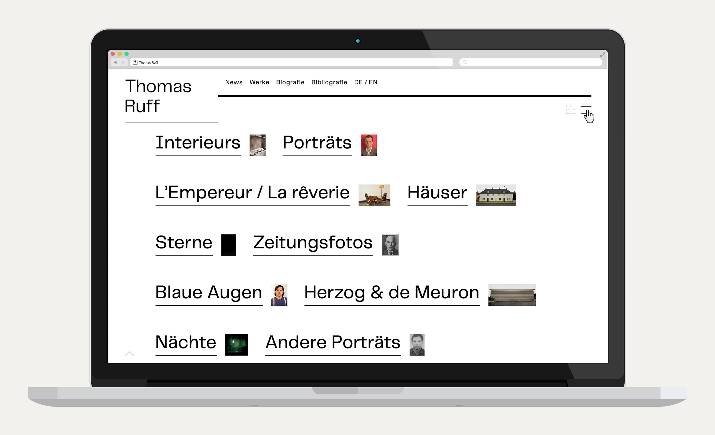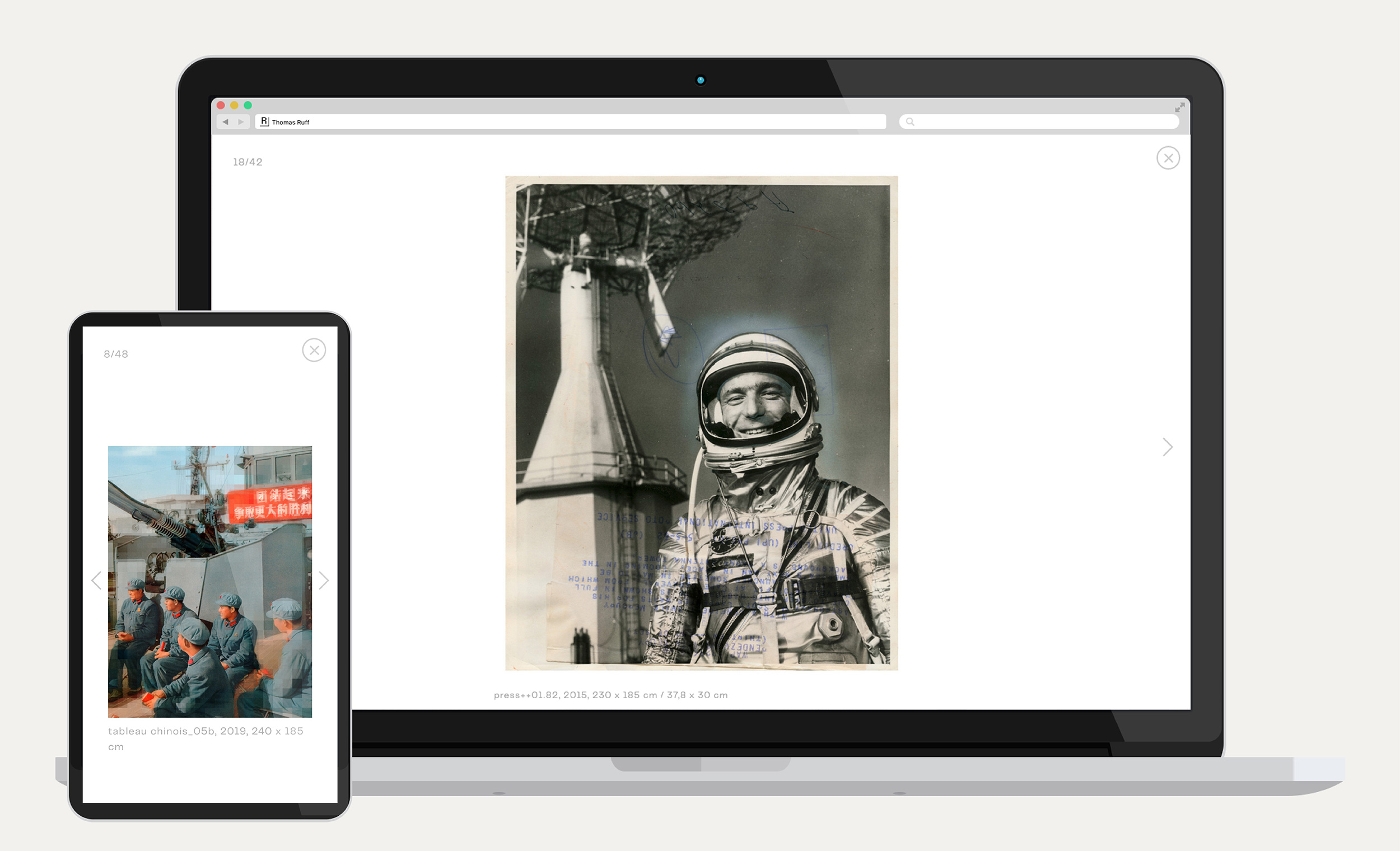 Trotz seiner Popularität ist das Gesamtwerk von Thomas Ruff nur den wenigsten in voller Gänze bekannt. So entstand die Idee, eine Webseite als umfassendes Werkverzeichnis zu schaffen, die alle Werkreihen mit allen Arbeiten zeigt.